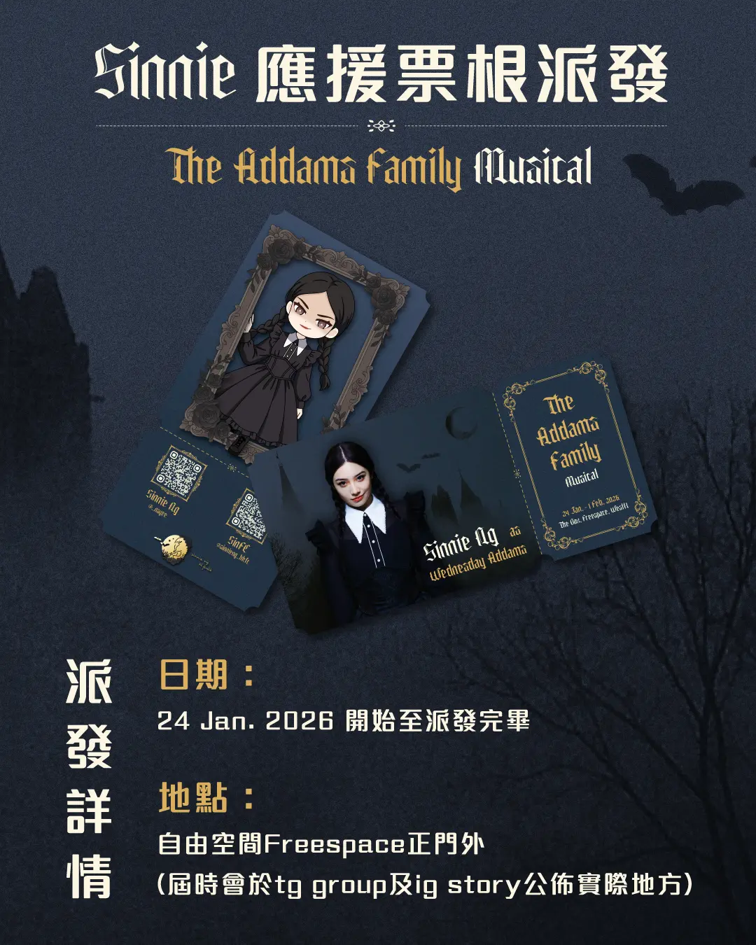 古靈精怪、神秘又可愛;笑容陰鷙、全黑襲來——就在明天,我們期待已久的《愛登士家庭|The Addams Family》音樂劇盛大開幕!🎭等不及看Sinnie as Wednesday Addams了吧?SinFC率先公佈應援品派發!